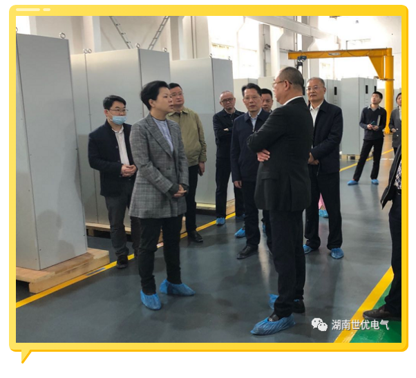 張迎春市長一行離開生產(chǎn)制造中心,來到世優(yōu)電氣子公司——湖南世優(yōu)科技服務(wù)有限公司,參觀了子公司大型檢測設(shè)備及檢測平臺。張市長充分肯定了世優(yōu)科技服務(wù)平臺建設(shè)工作,并希望世優(yōu)服務(wù)平臺能夠發(fā)揮更大作用,為更多企業(yè)做好檢測服務(wù)和相關(guān)的科技服務(wù),取得更好的成績。