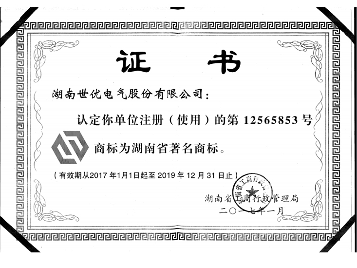 省級(jí)著名商標(biāo)證書(shū)